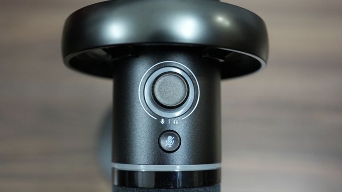 ノブのすぐ近くには、独立したミュートボタンが配置されています。